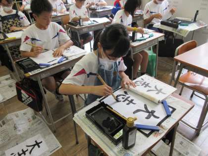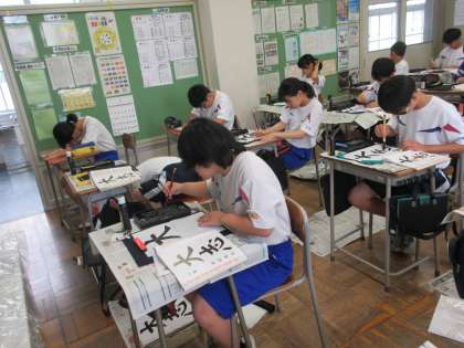 1学年 書写の授業 公開日 2023/07/11 更新日 2023/07/11 第1学年 1学年の国語の時間に書写を行っています。書いている文字は楷書体で「大志」です。大きな文字でのびのびと書いている生徒が多く、元気な1学年らしいなと思ってみています。今後も是非、いろいろな文字や書体に挑戦してほしいです。