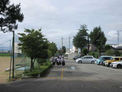 今朝の登校のようすです。