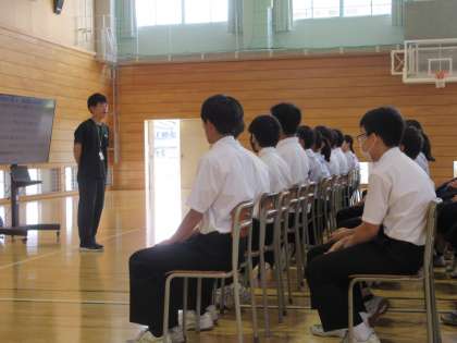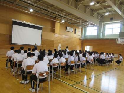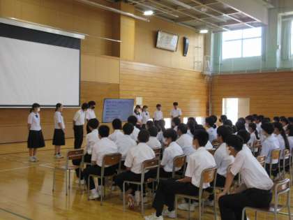 1学期を振り返って、14歳の挑戦で頑張ったところを共有したり、学習面や生活面のお話を聞きました。