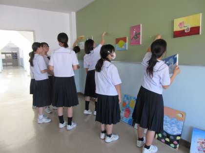 学校のようす 公開日 2023/08/25 更新日 2023/08/25 最近の水中の様子 美術部は夏休み中に取り組んだ油絵を校内に掲示しました。 油絵の配置バランスを考えたり、仲間で協力して作品を運んだりして、校内を鮮やかに彩ることができました。 水橋中学校へご来校の際は、ぜひ後舘2階渡り廊下前のアートギャラリーをご覧ください。