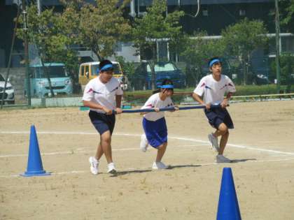 1学年 学年競技練習 公開日 2023/08/30 更新日 2023/08/30 第1学年 体育大会練習2日目です。今日は、学年競技「台風の目」の練習が始まりました。小学校で経験している生徒が多いためか、どの団もスムーズに練習していました。どの団が勝つのか、勝利に向かって練習中です。