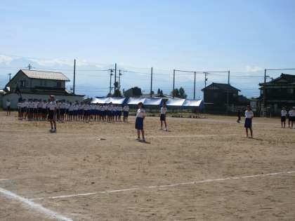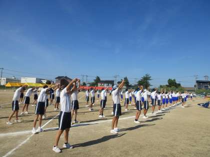 体育大会の練習のようすです。ストレッチ体操やエール交換、各学年種目の練習を行いました。