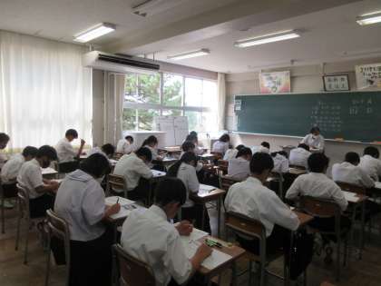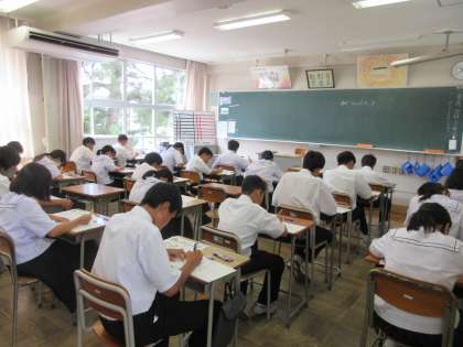 1学年 夏休み明けテスト 公開日 2023/09/05 更新日 2023/09/05 第1学年 9/5(火)体育大会の疲れが少しありつつ、元気に1年生は登校しました。今日は夏休み中の課題だったサマーワークから出題されている「夏休み明けテスト」を実施しました。生徒は真剣に取り組んで、夏休みのがんばりの成果を発揮してました。*今回の「伸びる力」は来週配布予定です。