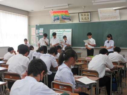 金沢校外学習事前学習 公開日 2023/09/11 更新日 2023/09/11 第2学年 本日の総合の時間に10月4日に行く校外学習について事前学習を行いました。学年生徒会が学年目標やルールについて原案を作り、その原案に沿って話し合いを行いました。この校外学習を通して経験を積み視野を広げていきましょう。また、「みんなで決めたルールをみんなで守る。」学年として皆で高め合えるよう頑張っていきます。