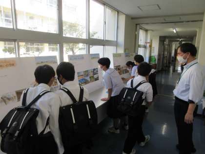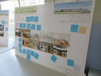 学校のようす 公開日 2023/09/13 更新日 2023/09/13 最近の水中の様子 事前ワークショップのあとで、設計パネルを校長室前に掲示しました。放課後になるとパネル前はたちまち黒山の人だかりになりました。生徒のアイディアを書いたフセン(青色)がたくさん貼り付けられました。9月24日(日)には水橋会館にて、水橋学園ワークショップが開催され、代表生徒達によるグループディスカッションで意見集約されます。