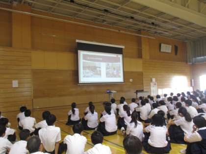 本日6限に、「社会に学ぶ『14歳の挑戦』」で体験したことや感じたことについて、2年生から1年生に向けた発表会が行われました。1年生が分かりやすいスライドを見せたり、クイズを交えて発表したりと、工夫を凝らして発表しました。1年生は熱心にメモをとったり、質問したりと、積極的に臨んでいました。