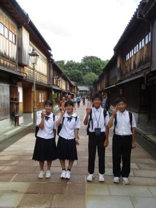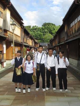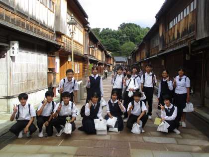 ひがし茶屋街で集合写真を撮りました。風情ある町並みを散策するのを楽しんでいました。