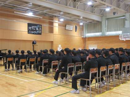 「同心協力〜Deliver Our Thoughts〜」のスローガンのもと、学習発表会が開幕しました。合唱コンクール本番直前だったので、生徒たちは緊張した面持ちでした。