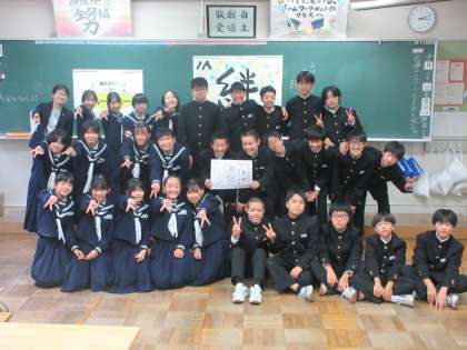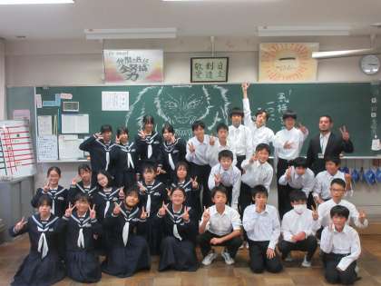 学習発表会を終え、皆で集合写真を撮りました。中学校で初めての合唱コンクール。緊張もほぐれ、皆ほっとした表情です。合唱コンクールを通して、皆で一つのものを作り上げる楽しさを感じ、さらにクラスの団結力も高まりました。