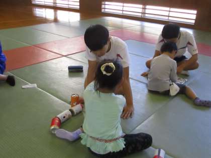 夏休み中に作成したおもちゃをつかって幼児と遊びました。