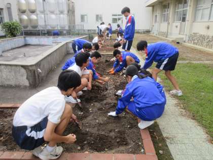 美化委員会 花壇の苗・球根植え 公開日 2023/10/31 更新日 2023/10/31 最近の水中の様子 10/31(火)美化委員と有志の生徒で中庭の花壇に、花の苗とチューリップの球根を植えました。和気藹々とした雰囲気の中、普段なかなかすることない土いじりを楽しみました。来年の春も、たくさんのチューリップで中庭が彩られることでしょう。