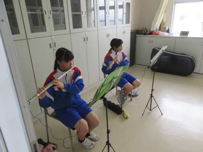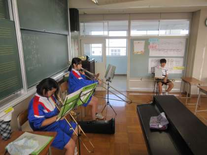 休日の部活動のようす。 <写真上下>吹奏楽部