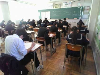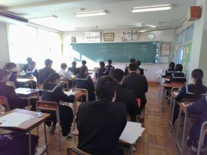 保健体育、美術、音楽、技術・家庭の単元テストが行われました。朝学活前に教室で問題を出し合ったり、ワークやプリントを見直したりする生徒が多かったです。