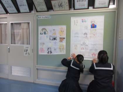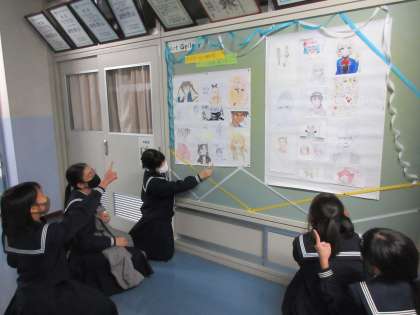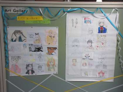 学校のようす 美術部 公開日 2023/12/01 更新日 2023/12/01 最近の水中の様子 美術部では11月は「部員の推しの絵を描こうの会」と題して、部員の好きなキャラクターを互いに描き合ったり、自分で描いたりしました。 掲示も自分たちで考えて、会議室前を賑やかに飾ることができました。HPの写真も部員が撮影しました。 ご来校の際は、ぜひご高覧ください。