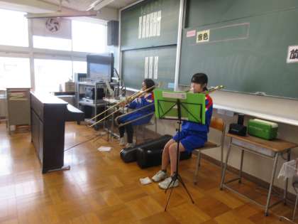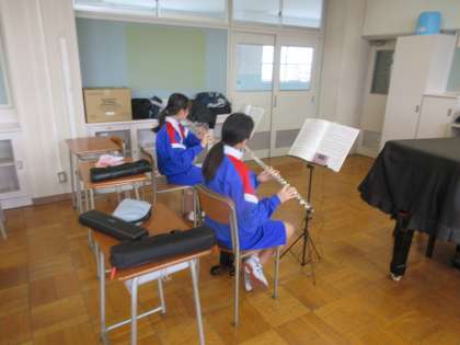 吹奏楽部はパート練習を行っています。