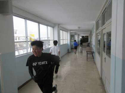 ソフトテニス部 積雪があるため屋内トレーニングを行っています。