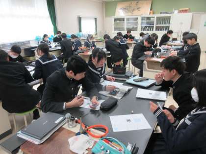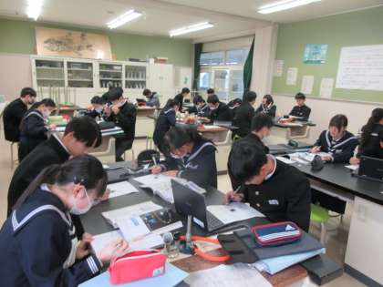 3年理科 天体の動きや月・金星の満ち欠けについてプリントを使ってまとめ学習をしています。