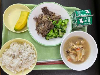 1月23日の給食 公開日 2024/01/23 更新日 2024/01/23 最近の水中の様子 今週(1/22〜1/26)は学校給食週間で、テーマは「オリンピック・パラリンピック応援給食〜めざせ未来のアスリート〜」です。 今日の献立のテーマは、筋力アップです。 <今日の献立> 麦ごはん 牛乳 パワーぎゅうぎゅう丼 ゆでブロッコリー 具だくさん汁 バナナ