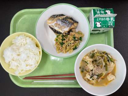 1月26日の給食 公開日 2024/01/26 更新日 2024/01/26 最近の水中の様子 今週(1/22〜1/26)は学校給食週間で、テーマは「オリンピック・パラリンピック応援給食〜めざせ未来のアスリート〜」です。 今日の献立のテーマは、集中力アップです。 <今日の献立> ごはん 牛乳 さばの塩焼き ねばーる納豆和え 全集中ごまキムチ鍋