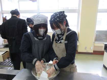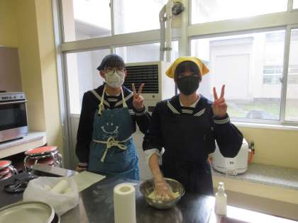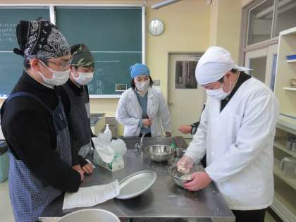 本日(1/29)の家庭科の授業で、調理実習をしました。メニューは豆腐入り白玉団子です。豆腐を使用することで、冷めても柔らかく、栄養素をより多く摂り入れることができます。班で役割分担をし、協力しながら完成させていました。お家でも実践してみたいですね。