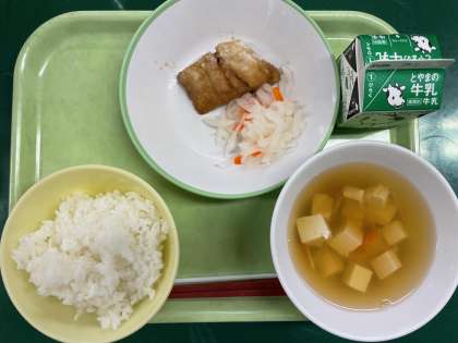 <献立> ごはん 牛乳 魚のかば焼き なます すまし汁
