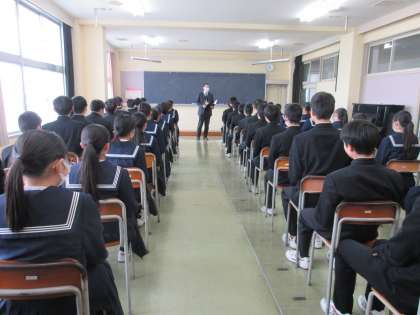 3年 学年集会の様子 公開日 2024/01/31 更新日 2024/01/31 第3学年 明日の私立一般入試に向けて、学年集会が開かれました。明日一緒に受験に挑む同級生の仲間たちの存在を感じながら、これまで頑張ってきた自分を信じて、力を出し切ってきてほしいと激励の言葉をいただきました。 今日は早めに就寝し、明日に備えましょう。健闘を祈っています。