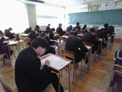 3年生は学力調査に取り組みました。中学校で行う最後のテストになりました。進路実現に向けて時間いっぱい取り組んでいる姿がありました。