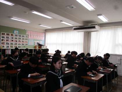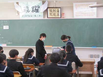 令和6年度前期生徒会役員選挙 投票 公開日 2024/03/07 更新日 2024/03/07 最近の水中の様子 今回の投票は、クロムブックを用いて行いました。選挙管理委員からの指示に従い、真剣に投票を行っていました。