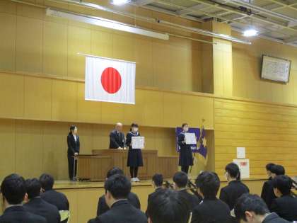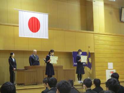 受賞伝達式(その2)、修了証授与式 公開日 2024/03/13 更新日 2024/03/13 最近の水中の様子 受賞伝達式の続きです。その後、修了証授与式も行われました。 <写真上> 中文連表彰 <写真中> 中体連表彰 <写真下> 修了証授与式