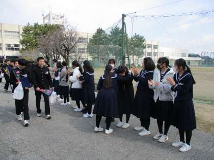 歓送のようす 公開日 2024/03/14 更新日 2024/03/14 最近の水中の様子 最後に、在校生と教職員、保護者で卒業生をお見送りしました。 卒業生との別れを惜しむ場面も見られました。 卒業生は皆、晴れ晴れとした表情で巣立っていきました。