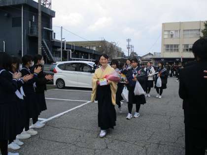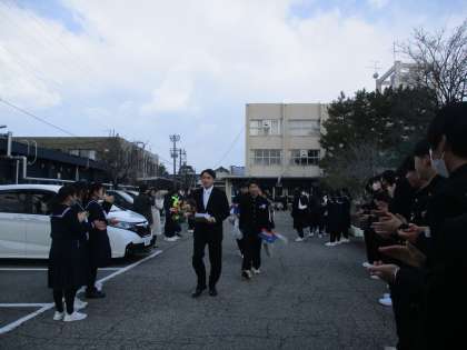 最後に、在校生と教職員、保護者で卒業生をお見送りしました。