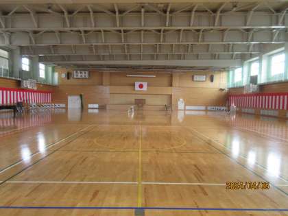 (写真上:会場となる体育館 午前中に在校生が準備を整えます)