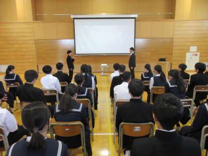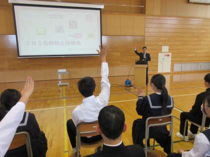 防犯教室 公開日 2024/04/16 更新日 2024/04/16 最近の水中の様子 4/16(火)の5限に、全校生徒を対象に、防犯教室を開きました。 (写真上:講師として富山県警察の方をお招きし、お話をいただきました) (写真中:闇バイト、架空請求、大麻の入手、「グルーミング」、自画撮りの被害など、SNSには危険性が伴います) (写真下:生徒代表からお礼の言葉です) SNSは、危険性を意識しながら使わなければならないことが、実感できました。
