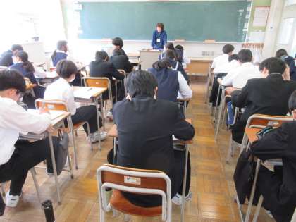 学年集会を終え、教室で「社会人基礎力チェックカード」を記入しました。