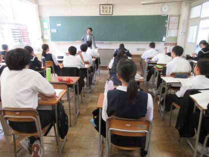 (写真下:2B 先生が体験談を語って下さいました)