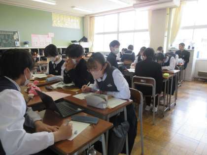 3学年 修学旅行に向けて 公開日 2024/04/19 更新日 2024/04/19 第3学年 本日、3年生は修学旅行のしおりを製本しました。神戸・奈良の班別学習班に分かれ、予定しているコースをしおりに記入しました。また、生活班や個人で達成したい目標も設定しました。 生徒たちはしおりを持ち帰りましたので、ご家庭でもぜひご覧ください。