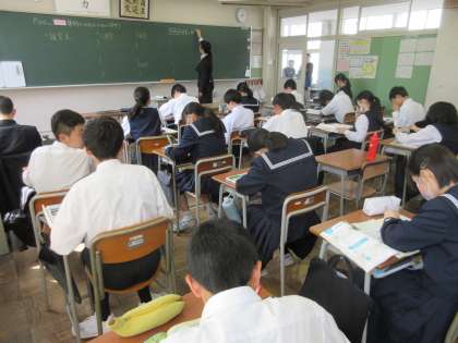 2学年の授業参観のようすです。 (写真上:2A 家庭科) (写真下:2B 理科)