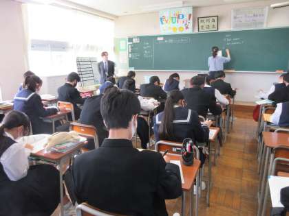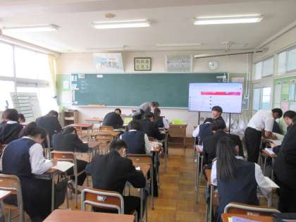 3学年 授業風景 公開日 2024/04/26 更新日 2024/04/26 第3学年 3学年のようすです。 (写真上:3A 数学 ノートに計算式を書きながら、教え合っています) (写真下:3B 英語 分からないところはALTのダニエル先生が教えてくれます)