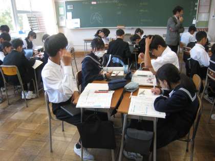 2学年のようすです。 (理科 班の仲間と調べ学習です)