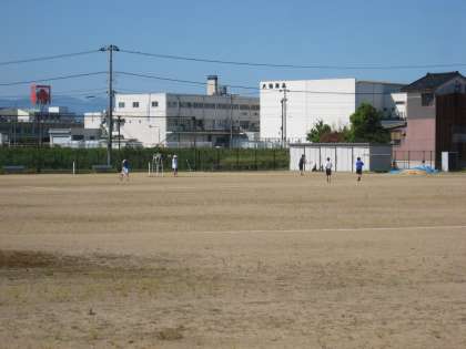 (写真上:ソフトテニス部 グラウンドはもう暑さを感じます)