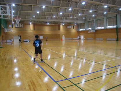 (写真下:男子バスケットボール 本日は付属中、岩瀬中と練習試合です。ガンバレ!)