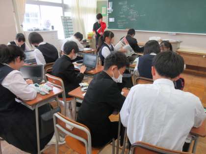 3学年のようすです。 社会科では、クロムブックを用いて調べ学習をおこないました。