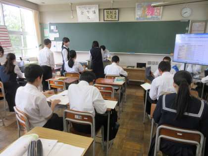2学年 授業風景 公開日 2024/06/05 更新日 2024/06/05 第2学年 2学年のようすです。 (写真上:2A 体育 持久走です。水分補給をしましょうね!) (写真下:2B 数学 連立方程式を解いています)