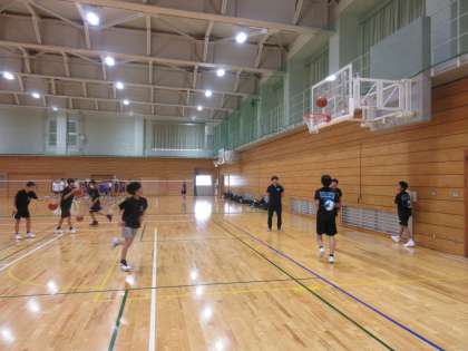 部活動強化日 その4 公開日 2024/06/06 更新日 2024/06/06 最近の水中の様子 (写真上:男子バスケットボール部 教育実習生さんが活動に参加してくれました) (写真中:女子バスケットボール部) (写真下:男女バドミントン部)