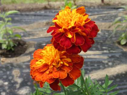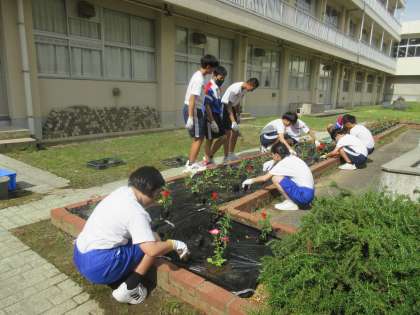 (写真上:みんなで協力して植えた花が、中庭に根付きました)