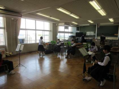 部活動強化日 その6 公開日 2024/06/07 更新日 2024/06/07 最近の水中の様子 (写真上:吹奏楽部 セクション練習です) (写真中:剣道部 生徒会執行部が取材に来ていました) (写真下:男子バスケットボール部 シュート練習中です)