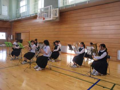 (写真下:入退場は吹奏楽部が演奏をしました。1年生が初めてみんなの前で演奏しました。「とっても緊張しました!」とのことです)