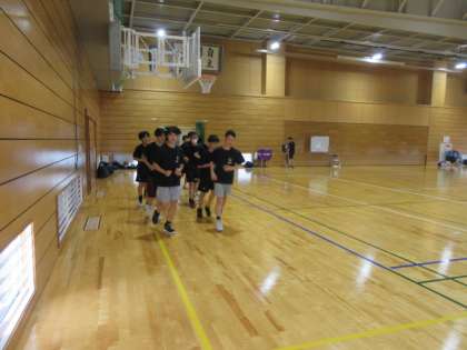 (写真下:男子バスケットボール部 気合を入れてランニング中です)