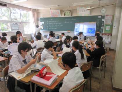 1学年のようすです。英語では、グループで練習に取り組む姿が見られました。
