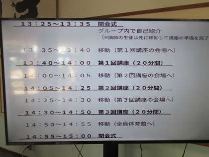 (写真中:生徒会執行部が作ったスケジュールが生徒玄関のモニターに映されています)